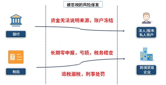 需要資金回流時,無法說明資金來源,造成賬戶凍結(jié);長期零申報,虧損,導(dǎo)致稅務(wù)稽查;涉嫌逃稅漏稅,受到刑事處罰。