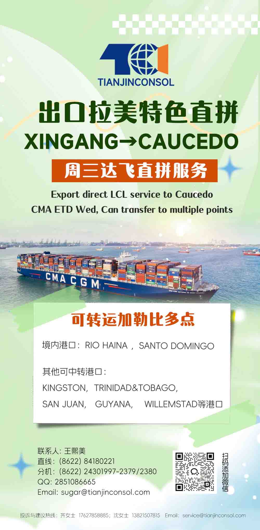 XINGANG→CAUCEDO穩(wěn)定直拼 加勒比多港可達
