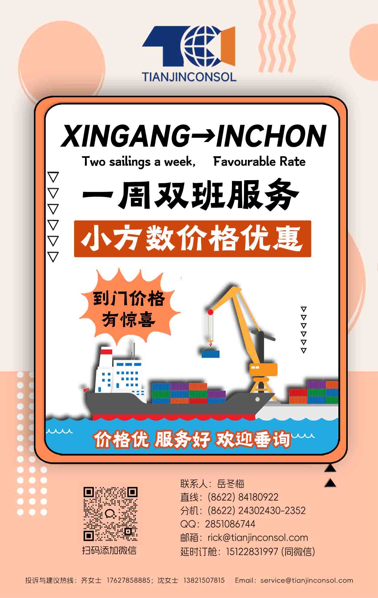XINGANG→INCHON價優(yōu)服務好 雙11活動持續(xù)中
